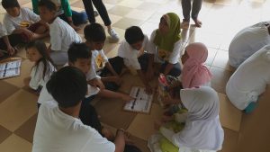 Kakak2 dari tim PT MGR mengajak adik2 bermain beberapa games antara lain melatih konsentrasi anggota tubuh, menyusun puzzle, memindahkan sarung, minum dari sedotan panjang,.